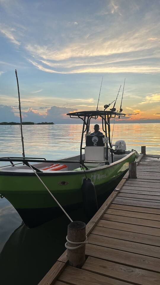 The space When you book the Spoonbill, you will be be nestled in beautifully crafted Belizean hardwood construction, fully air conditioned (though we prefer it with only the breezes!) and well appointed for your stay, only a 5 minutes ride from Secret Beach. Each casita generates its own electricity from sunlight & collects filtered rainwater for warm showers and washing dishes. The pool is always the perfect temperature and not a soul around to interrupt your deep dive into your favorite novel. A 20 minute ride puts you in the heart of San Pedro for shopping, diving and lots of restaurants. Great food at Guapo's or The Roadkill Cafe is in walking distance away or ride to The Sunset Palace for a frozen cocktail and get the best seat on the island (hint...its a table in the water) for the incredible sunset view!