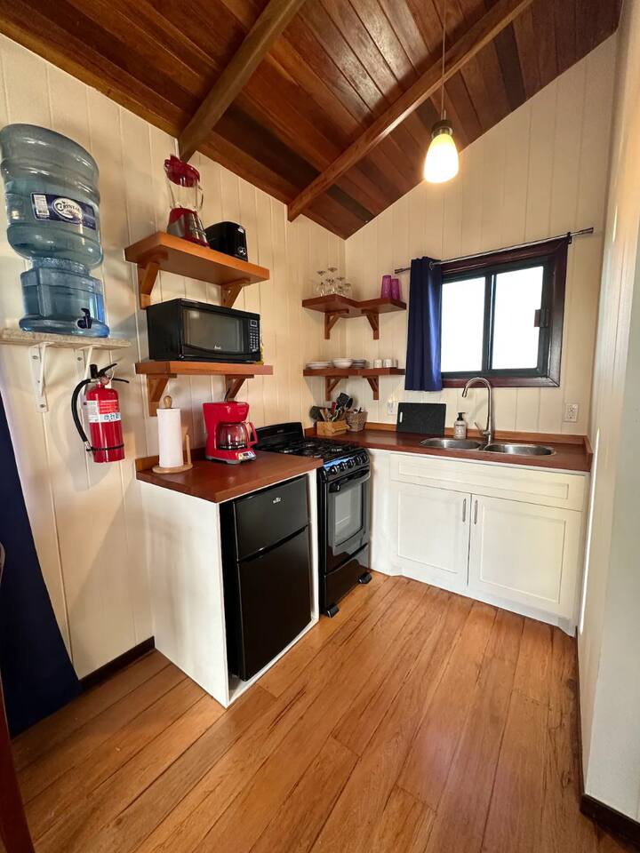 Each casita is equipped with a full bath w/shower, wifi, a/c, drinking water, hot water, gas range, mini fridge, microwave, coffee maker, ceiling fan, cookware, toaster, blender, comfortable memory foam mattress & bedding, screened in porch, bath towels & yes pool towels!